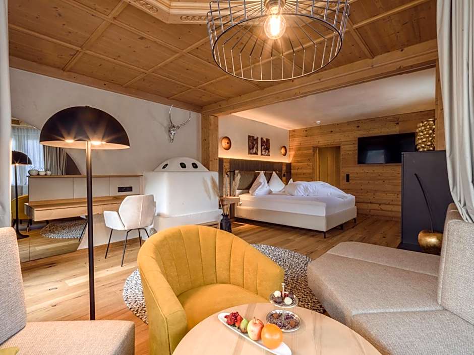 Large junior suite with south or east-facing balcony, a luxury bathroom, 2 satellite TVs with DVD Player, separate living room and bedroom and a walk-in wardrobe.